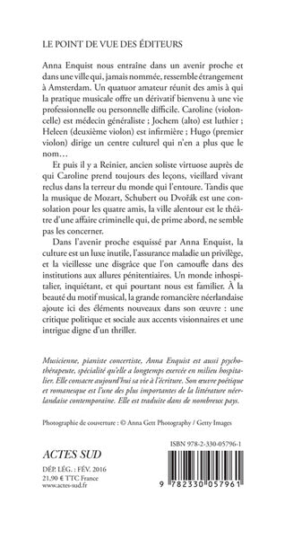 Dans un avenir proche, à Amsterdam, quatre amis passionnés de musique classique forment un quatuor amateur. Caroline, médecin violoncelliste, Jochem, luthier altiste, Heleen, infirmière violoniste, et Hugo, directeur de centre culturel violoniste, trouvent dans la musique un refuge face à leurs vies difficiles. Sous la tutelle de Reinier, ancien virtuose, ils interprètent Mozart, Schubert et Dvořák. Cependant, une affaire criminelle secoue la ville, mettant en péril leur tranquillité. Afficher moinsAfficher plus