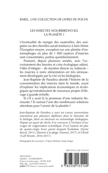 L'idée de consommer des insectes peut sembler répugnante pour la plupart des Européens, mais dans de nombreuses régions du monde, plus de 1 000 espèces d'insectes sont consommées, parfois quotidiennement. Face à l'accroissement des besoins alimentaires et à la crise écologique, l'intégration des insectes dans notre alimentation est sérieusement étudiée par la FAO et les biologistes. Jean-Baptiste de Panafieu retrace l'histoire de la consommation des insectes, explore les implications économiques et écologiques de l'élevage à grande échelle, et interroge le rôle potentiel de cette pratique dans la sécurité alimentaire mondiale. Afficher moinsAfficher plus