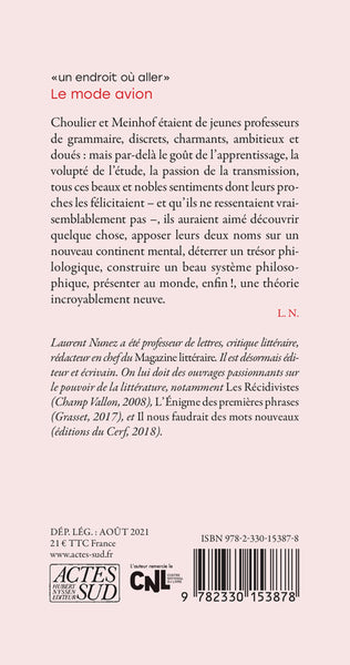 Biographie de l'auteurLaurent Nunez a été professeur de lettres, critique littéraire, rédacteur en chef du Magazine littéraire. Il est désormais éditeur et écrivain. On lui doit des ouvrages passionnants sur le pouvoir de la littérature, comme Les Récidivistes (Rivages poche, 2008), L'Énigme des premières phrases (Grasset, 2017), et Il nous faudrait des mots nouveaux (Les éditions du Cerf, 2018). Le mode avion (2021) est publié chez Actes Sud.