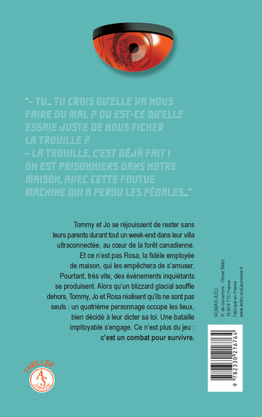 Présentation"- Tu... tu crois qu'elle va nous faire du mal ? Ou est-ce qu'elle essaie juste de nous ficher la trouille ? - La trouille, c'est déjà fait ! On est prisonniers dans notre maison, avec cette foutue machine qui a perdu les pédales..." Tommy et Jo se réjouissent de rester sans leurs parents durant tout un week-end dans leur villa ultraconnectée, au coeur de la forêt canadienne. Et ce n'est pas Rosa, la fi dèle employée de maison, qui les empêchera de s'amuser. Pourtant, très vite, des événements inquiétants se produisent. Alors qu'un blizzard glacial souffle dehors, Tommy, Jo et Rosa réalisent qu'ils ne sont pas seuls : un quatrième personnage occupe les lieux, bien décidé à leur dicter sa loi. Une bataille impitoyable s'engage. Ce n'est plus du jeu : c'est un combat pour survivre.,En brefPris au piège d'une maison connectée ! Ils rêvaient d'un week-end de liberté sans les parents, l'assistante virtuelle de la famille va les plonger dans le chaos. Afficher moinsAfficher plus