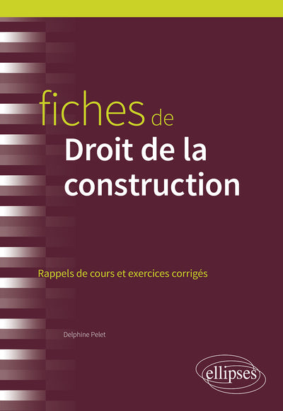 Ce livre propose 39 fiches de révision complètes sur le cours de Droit de la construction. Chaque fiche contient les définitions à connaître, les erreurs à éviter, les points essentiels à retenir, ainsi que des exercices corrigés. Des repères bibliographiques permettent d'approfondir ses connaissances. Delphine Pelet, docteur en droit et avocate, est responsable juridique en entreprise. Afficher moinsAfficher plus