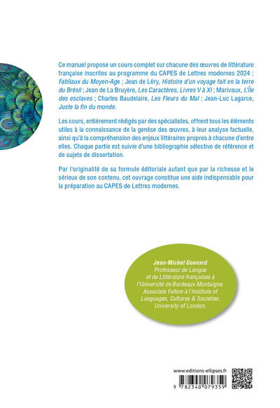 Ce manuel propose un cours complet sur chacune des œuvres de littérature française inscrites au programme du CAPES de Lettres modernes 2024, du Moyen Âge au XXe siècle. Les cours, entièrement rédigés par des spécialistes, offrent tous les éléments utiles à la connaissance de la genèse des œuvres, à leur analyse factuelle, ainsi qu'à la compréhension des enjeux littéraires propres à chacune d'entre elles. Chaque partie est suivie d'une bibliographie sélective de référence et de sujets de dissertation. Par l'originalité de sa formule éditoriale autant que par la richesse et le sérieux de son contenu, cet ouvrage constitue une aide indispensable pour la préparation au CAPES de Lettres modernes. Afficher moinsAfficher plus