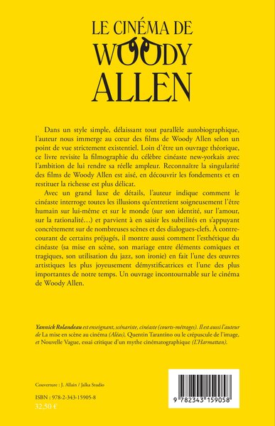 Ce livre analyse en profondeur l'œuvre cinématographique du réalisateur américain Woody Allen. Yannick Rolandeau décortique les thèmes récurrents de ses films, ses techniques de mise en scène et ses influences artistiques. Il explore également la dimension autobiographique de ses œuvres et les controverses entourant sa vie privée. Une étude complète et passionnante pour tout amateur de cinéma. Afficher moinsAfficher plus