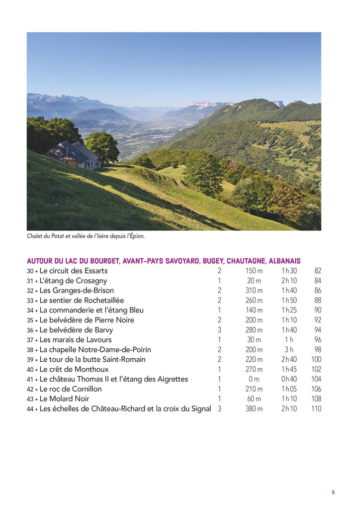 Présentation 44 balades familiales pour découvrir les multiples richesses aux portes de la capitale savoyarde Sur les 44 balades, ce titre offre 12 nouvelles destinations et des images inédites pour découvrir les massifs de la Chartreuse et des Bauges autour des villes de Chambéry, d'Aix-les-Bains et de Montmélian ; à partir de cette cluse creusée par les épais glaciers du quaternaire et qui a laissé la place au lac du Bourget, à des marais et des moraines. L'éboulement du Granier, en 1248, a achevé de modeler le paysage. La région n'aura plus de secrets pour le lecteur/randonneur à la recherche de nouvelles sensations visuelles, olfactives, gustatives... Afficher moinsAfficher plus