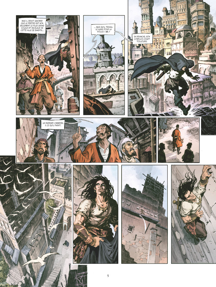 Présentation Pour les autres, l'enfer, c'est Conan. Une cité-état quelconque, quelque part entre Zamora et Corinthia. En prison, Conan, que la réputation de mercenaire précède, est approché par Murilo, un aristocrate influent qui souhaite louer les services du cimmérien pour se débarrasser de son adversaire politique : le prêtre rouge Nabonidus. Parvenantà s’évader, Conan s’infiltre alors dans la demeure piégée de sa cible. Mais sur place, il découvre que, derrière la lutte de pouvoir entre Nabonidus et Murilo, c'est peut-être quelqu’un d’autre qui tire les ficelles... Dans ce nouvel album, Patrice Louinet et Paolo Martinello nous décrivent un Conan voleur et assassin, lié par le sortà deux bandits d’une espèce bien différente. Un récit moinsépique que les aventures guerrières du cimmérien, offrant un huis-clos dans un cadre urbain qui nous livre une vision sombre– mais non moins intéressante– du personnage. Afficher moinsAfficher plus