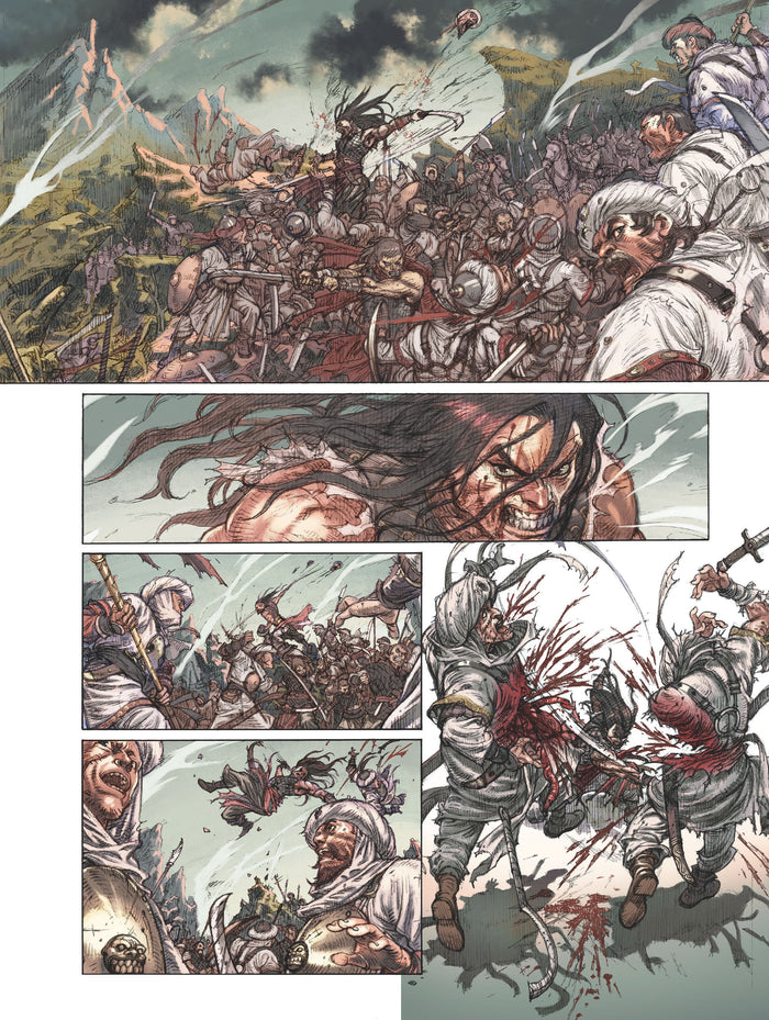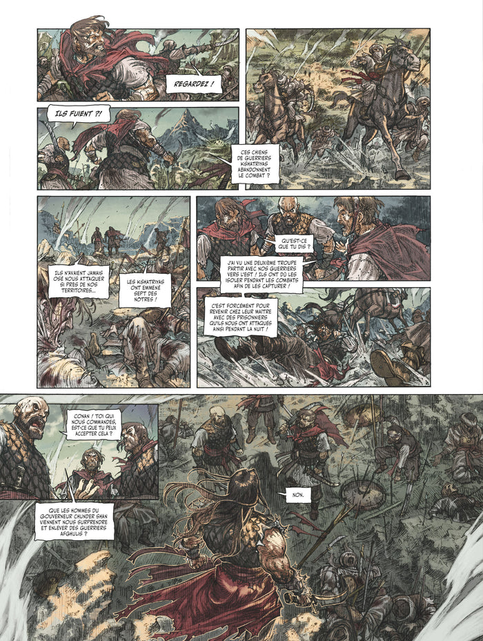 Présentation La vengeance est un art Au royaume de Vendhya, alors que le roi vient de mourir terrassé par les sortilèges des prophètes noirs de Yimsha, sa sœur, Yasmina, décide de le venger… Elle décide, pour s’en charger, de prendre contact avec Conan, alors chef de tribu afghuli. Mais tandis que plusieurs de ses guerriers viennent d’être tués par les hommes du royaume de Vendhya, celui-ci a d’autres plans en tête. La princesse croyait pouvoir se servir du cimmérien, c’est plutôt elle qui servira ses intérêts... Sylvain Runberg et le prodigieux dessinateur Jae Kwang adaptent l’un des récits les plus ambitieux et les plus complexes de Robert E. Howard. Une aventure où combatsépiques, sorcellerie et complots se mêlent dans un Orient fantasmé, mystique et angoissant. Afficher moinsAfficher plus