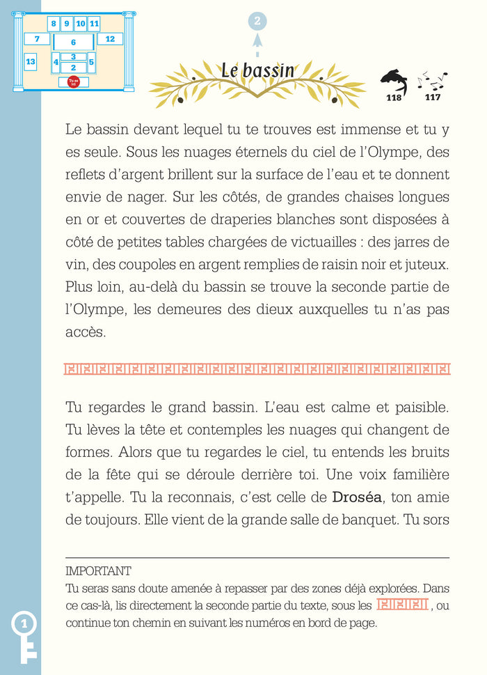 Présentation Vous voilà dans la peau de Silène, fille de Zeus ! Les plus grands héros grecs sont menacés par des dieux renégats et vous seule pouvez les sauver. Chargée de délivrer un message primordial aux humains, vous devrezéviter les pièges des traîtres de l’Olympe pour espérer sortir saine et sauve du domaine des dieux... Difficulté : 3/3 Accessibilité : 2/3 Fidélitéà l’univers : 3/3 Deux rabats avec : - Un plan détaillé pour te repérer - Des objets pour progresser dans l'histoire - Un carnet d'indices pour t'aider si tu es bloqué Escape ! est une collection de livres-énigmesà la croisée des« Escape Games » et des« Livres dont vousêtes le héros ». Coincés dans une autre dimension, piégés loin de chez eux, enfermés dans un musée… les jeunes lecteurs vont devoir mettre leurs méningesà l’épreuve pour résoudre desénigmes et trouver la sortie. L’occasion de mêler réflexion et aventure dans des univers qu’ils connaissent déjà (Geronimo Stilton, Chi, Les Lapins Crétins) ou qu’ils auront loisir de découvrir (les contes de fée, la mythologieégyptienne) ! Afficher moinsAfficher plus