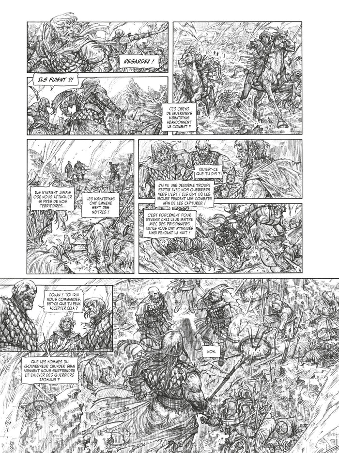 Dans ce tome, Conan le Cimmérien est confronté au mystérieux culte du Peuple du Cercle Noir. Il devra affronter des complots machiavéliques et des ennemis redoutables pour sauver sa propre vie. Cette bande dessinée en noir et blanc met en avant l'univers sombre et brutal créé par Robert E. Howard, avec des illustrations saisissantes et une atmosphère envoûtante. Afficher moinsAfficher plus