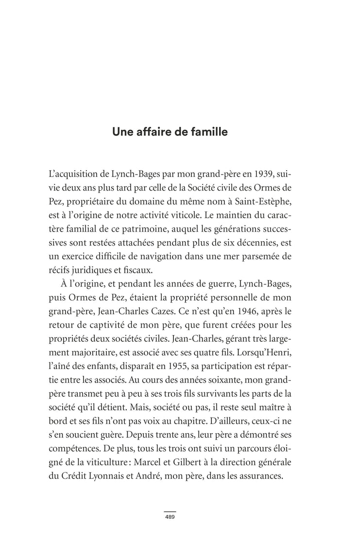 Présentation Propriétaire de Château Lynch-Bages, grand cru classé de Pauillac, Jean-Michel Cazes est une figure internationale du vin. Il a contribuéà faire entrer le vignoble bordelais dans la modernité et témoigne des bouleversements du monde viticole depuis 50 ans. « Le vin est pour moi, comme le pain, la base de toute nourriture. C’est le breuvage essentiel, synonyme de culture, de bonheur, d’art de vivre. Chaque bouteille qui dort dans ma cave contient un univers : la géographie et l’histoire du lieu qui l’a vue naître, le sol, la plante, le climat, un savoir-faire… Un univers prêtà s’échapper età renaître, comme le génie de la lampe d’Aladin,à la première et unique occasion.» Après unâge d’or couronné par le classement de 1855 qui a fait des crus de Bordeaux les vins les plus célèbres du monde, le vignoble bordelais a mis du tempsà intégrer les mutations des XXe et XXIe siècles. Jean-Michel Cazes aété le témoin de la crise des années 1970 qui a vu l’aura de Bordeaux ternir et le prix de ses vins s'effondrer. Il aété un acteur majeur de leur renouveau et leur ambassadeur infatigable. L'histoire familiale et le parcours personnel de cet entrepreneur enthousiaste, viti-viniculteur dans l’âme, font de son livre une véritable saga. Son expérience et ses réflexions avisées sont autant de clés pour déchiffrer le patrimoine et le fonctionnement complexes des grands crus de Bordeaux. Quelques dates-clés : • 1985 : L’astronaute Patrick Baudry emporteà bord de la navette Discovery un Château Lynch-Bages. • 1988-1992 : Lynch-Bages, puis Pichon-Longueville sont classés n° 1 des 100 most exciting winesétablie par le magazine américain Wine Spectator. • 2003 : Jean-Michel Cazes estélu Man of the Year par le magazine anglais Decanter. • 2007 : Wine Spectator lui décerne le Distinguished Service Award. • 2011 : Jean-Michel Cazes reçoit de l’institut des Masters of Wine le Lifetime Achievement Award. • 2016 : Lynch-Bages& Cie est sacré Global Best of Wine Tourism par le réseau des vignobles de renommée internationale (Espagne, France, Afrique du Sud, Allemagne, Argentine, Portugal, USA, Chili). Afficher moinsAfficher plus