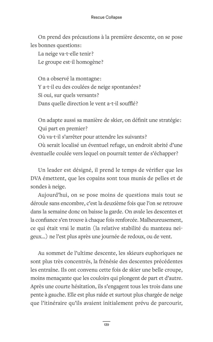 Présentation L’histoire du secours en montagne est jalonnée d’invraisemblables récits d’avalanches,à l’issue parfois heureuse, parfois tragique. Voici l'histoire, captivante, et l’analyse,édifiante, d’une dizaine de secours en avalanche. Tout au long de sa carrière de médecin urgentiste, deguide de haute montagne et de secouriste, Pierre Muller aété confronté, directement ou indirectement,à des avalanches. Il a souhaité, au travers de ce récit très accessible, emmener le lecteur dans les coulisses du secours, mais aussi faire part de son vécu et des leçons qu'il pouvait en tirer. Car, qu’elles se terminent bien ou de façon dramatique, les avalanches sont toujours riches d’enseignements. De l’avalanche du mont Maudit qui surprend tout le monde en pleinétéà celle des Orres qui emporte des lycéens en raquette sur un terraina priorisûr (la forêt), en passant par celle de Val-d’Isère qui balaye un club UCPA ou l’incroyable histoire des miraculés de la Maurienne, la neige n’a pas livré tous ses secrets. Afficher moinsAfficher plus