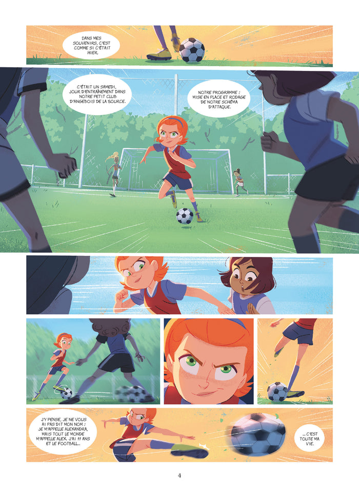 Présentation À la poursuite de ses rêves À 11 ans, Alexandra est passionnée de football ! Douée pour cette discipline, elle rêve de devenir une grande championne ! Pour le moment, elle retrouve sonéquipe tous les samedis au club dans l’espoir de gagner faceà leur rivales,« Les Belettes». Mais alors qu’elle encadre un entraînement non loin de la route, la vie d’Alex bascule. Après un accident causé par une voiture, Alex voit ses rêves se briser. C’est le début d’un long chemin. Rien ne sera plus jamais comme avant.À moins que…Soutenue par sa famille, ainsi que par son petit frère et ses camarades du club, Alex va se battre. Après le choc, les premières séances de rééducation vont lui permettre de faire ses premiers pas debout. Curieusement la rééducation, demande comme lors d’une compétition, un mental d’acier. Epaulée par l’équipe médicale, Alex va faire preuve d’une volontéà touteépreuve et se réapproprier, pasà pas, son corps et ses rêves… Message d’espoir, leçon de courage,Balle au pied, aborde le thème de la reconstruction de soi. Lylian (Méto, Les Géants…) trouve le ton juste pour traiter une question rarement abordée en jeunesse : comment vivre avec un handicap ? Avec cette série aux dessins solaires, une mise en scèneà hauteur des personnages, nous entrons dans le quotidien d’Alex qui va trouver la force de poursuivre son rêve. Une histoire d’amitié, de résilience et d’espoir. Afficher moinsAfficher plus