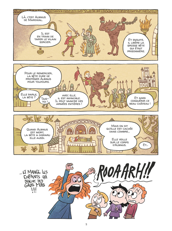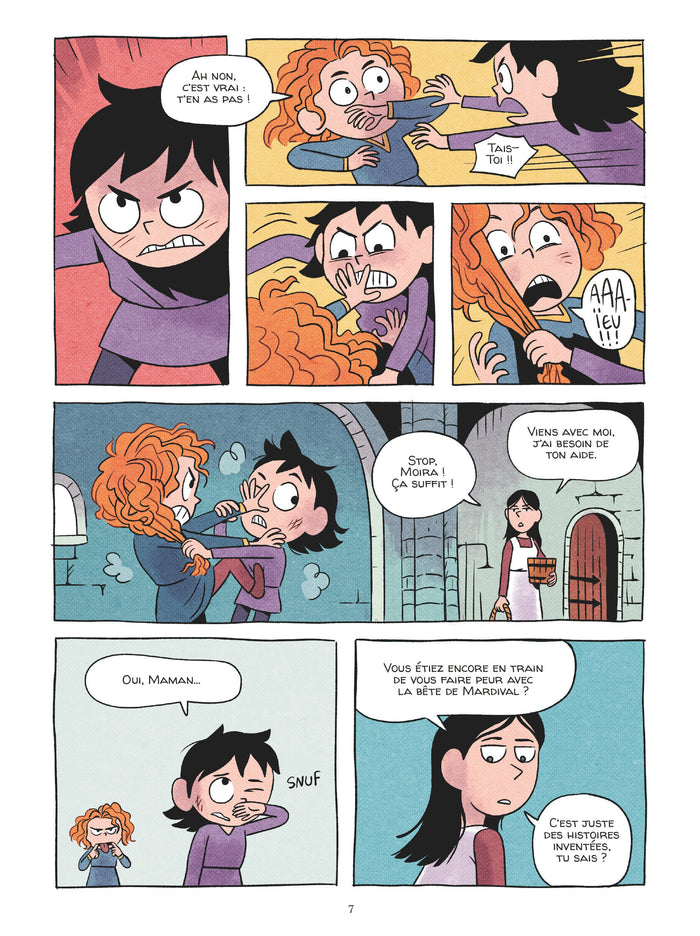 Présentation La jeune fille et le monstre ! Comme sa mère avant elle, Moira est servante au château de Mardival où le grand seigneur donnera ce soir une cérémonie en l’honneur de son illustre ancêtre, le Comte Albinus de Mardival. Mais au cours des festivités, Moira se retrouve accidentellement en contact avec les reliques sacrées de l’aïeul. Malheur ! La malédiction va alors s’abattre sur elle. Miseà la porte, Moira est livréeà elle-même ; rejetée par les châtelains mais aussi par les villageois qui sont trop apeurés par le monstre qui la traque désormais. Par chance, dans son exil forcé, Moira va croiser la route de Grégoire. Ce soldat déserteur, recherché par la garde a peut-être une idée pour conjurer le sort … C’est le début d’une expédition durant laquelle une complicité va naître entre ces deux personnages. Cette amitié inattendue pourrait permettreà Moira de découvrir ce qui la lie vraimentà cette bête légendaire. Quantà Grégoire il pourrait enfin se libérer d’un lourd secret d’État qu’il garde depuis bien trop longtemps.À la lumière de toutes ces révélations, le pouvoir de la couronne pourrait vaciller… Trahisons, aventures mais aussi retournements de situation, rythment ce roman graphiqueà l’ambiance médiévale qui se dévore d’une traite ! Le dessin rafraîchissant de Yann Cozic, qui fait une entrée remarquée chez Glénat, nous donne le sourire avec ce récit d’émancipation plein d’humour et de suspense. Un album tout public à découvrir sans attendre ! Afficher moinsAfficher plus