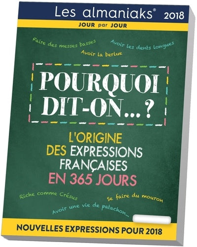 Ce petit almanach ludique propose chaque jour une explication sur l'origine d'une expression française courante. En famille ou entre amis, amusez-vous à deviner d'où viennent des expressions telles que 'un bébé Cadum' ou 'être au taquet'. Une façon amusante d'enrichir ses connaissances linguistiques. Afficher moinsAfficher plus