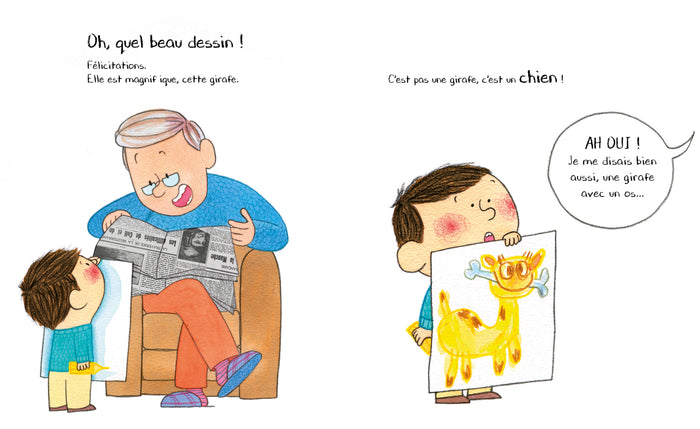 Ce livre jeunesse met en scène un dialogue entre un auteur et un illustrateur qui discutent de l'importance des dessins dans un livre. Michaël Escoffier et Mathieu Maudet, deux grands noms de la littérature jeunesse, partagent avec humour et complicité leur vision de la création. Les jeunes lecteurs découvriront les coulisses de la réalisation d'un album et l'importance du travail d'équipe. Afficher moinsAfficher plus
