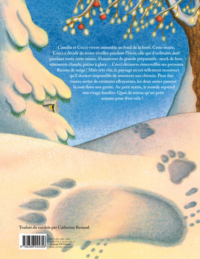 Premier volume d'une série écrite et illustrée par une jeune artiste suédoise à suivre: Lisa Moroni. Dans ce volume, deux amies adaptent leurs activités à l'approche de l'hiver. Si Camilla a presque revêtu l'intégralité de son pelage épais et attend avec hâte les premiers flocons pour faire de la luge, Koksi a l'habitude d'hiverner. Mais cette année, elle a décidé de tenter l'aventure et de rester éveillée. Voici les deux amies parties pour une grande promenade sous les flocons qui leur créera bien des émotions.