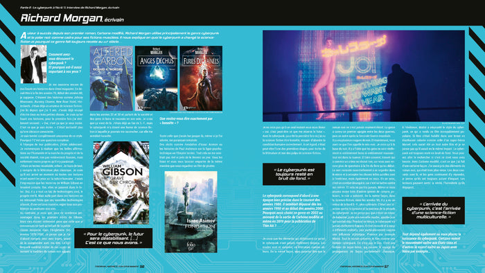 Présentation L’histoire et les moments-clés d’un genre majeur dans un ouvrage richement illustré.  Akira, Blade Runner, Black Mirrorou encoreCyberpunk 2077... La science-fiction atteint ses sommets quand elle nous met en garde, et tente de prédire l’impact futur des dérives de notre présent. Nous sommesà la fin des années 70, notre monde est enébullition, les outils informatiques commencentàêtre accessibles et le cyberpunk voit le jour. Un genre littéraire qui aurait puêtreéphémère, attendant que la réalité ne le rattrape. Pourtant, sans cesse réinventé, il rend compte depuis lors des angoisses et des attentes de ses contemporains quantà l’évolution technologique, le totalitarisme, et la place de l’humain dans la société.  Désormais, le cyberpunk est protéiforme. Des livresà la télévision, du cinéma aux jeux de rôle, des jeux vidéoà la musique, nous vous emmenons découvrir l’histoire de ce genreà part entière. Analyses, oeuvres majeures et entretiens exclusifs sont au programme d’un futur imminent... le vôtre.  Afficher moinsAfficher plus