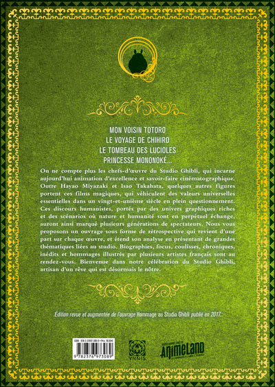 PrésentationMON VOISIN TOTORO LE VOYAGE DE CHIHIRO LE TOMBEAU DES LUCIOLES PRINCESSE MONONOKÉ... On ne compte plus les chefs-d’œuvre du Studio Ghibli, qui incarne aujourd’hui animation d’excellence et savoir-faire cinématographique. OutreHayao MiyazakietIsao Takahata, quelques autres figures portent ces films magiques, qui véhiculent des valeurs universelles essentielles dans un vingt-et-unième siècle en plein questionnement. Ces discours humanistes, portés par des univers graphiques riches et des scénarios où nature et humanité sont en perpétueléchange, auront ainsi marqué plusieurs générations de spectateurs. Nous vous proposons un ouvrage sous forme de rétrospective qui revient d’une part sur chaque oeuvre, etétend son analyse en présentant de grandes thématiques liées au studio. Biographies, focus, coulisses, chroniques, inédits et hommages illustrés par plusieurs artistes français sont au rendez-vous. Bienvenue dans notre célébration duStudio Ghibli, artisan d’un rêvequi est désormais le nôtre. Édition revue et augmentée de l’ouvrageHommage au Studio Ghiblipublié en 2017.   Afficher moinsAfficher plus