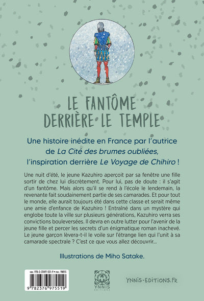 Présentation Une histoire inédite en France par l’autrice deLa Cité des brumes oubliées, l’inspiration derrièreLe Voyage de Chihiro! Une nuit d’été, le jeune Kazuhiro aperçoit par sa fenêtre une fille sortir de chez lui discrètement. Pour lui, pas de doute : il s’agit d’un fantôme. Mais alors qu’il se rendà l’école le lendemain, la revenante fait soudainement partie de ses camarades. Et pour tout le monde, elle aurait toujoursété dans cette classe et serait même une amie d’enfance de Kazuhiro ! Entraîné dans un mystère qui englobe toute la ville sur plusieurs générations, Kazuhiro verra ses convictions bouleversées. Il devra en outre lutter pour l’avenir de la jeune fille et percer les secrets d’unénigmatique roman inachevé. Le jeune garçon lèvera-t-il le voile sur l’étrange lien qui l’unità sa camarade spectrale ? C’est ce que vous allez découvrir... Sachiko Kashiwaba(1953 - ) est une autrice reconnue de littérature fantasy jeunesse et young adult. Elle aécrit plus de 70œuvres et a obtenu multiples récompenses littéraires, dont le prix Kôdansha. Trois de ses titres ont inspiré des longs métrages d’animation,Le Voyage de Chihiro,Wonderland : le Royaume sans pluieetLa Maison deségarées. Déjà parus auxéditions Ynnis :La Cité des brumes oubliées,La Maison deségarées,Wonderland : le Royaume des Pluieséternelles   Miho Satake(1957 - ) est une artiste spécialisée dans l’illustration d’ouvrages jeunesse, notamment laTrilogie de HurleetAya et la Sorcièrede Diana Wynne Jones, ainsi queKiki la petite sorcièred’Eiko Kadono. Déjà paru auxéditions Ynnis :Aya et la sorcière, de Diana Wynne Jones (illustrations) Afficher moinsAfficher plus