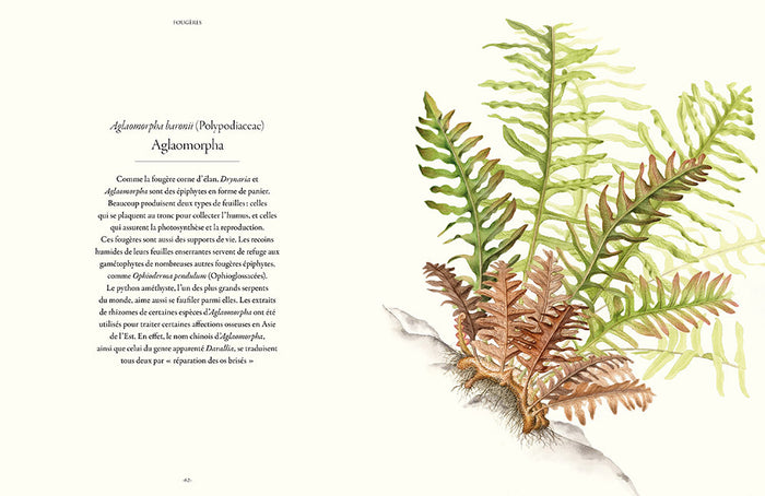 PrésentationPlantes fascinantes, les fougères (11 000 espèces) sont indissociables de l'histoire de laTerre, dont elles sont devenues les témoins au fil du temps. Écrit par deux botanistes, cet ouvrage nous entraîne dans un voyage palpitant de 400 millions d'années à la rencontre de ces plantes qui ont su grimper, ramper, nager ou devenir des arbres pour s'adapter et conquérir la planète. Plantes fascinantes d'une beauté incomparable, les fougères sont indissociables de l'histoire de la Terre, dont elles sont devenues les témoins au fil du temps. Des forêts boréales de Russie aux déserts du Sud-Ouest américain, des luxuriantes forêts tropicales de Taïwan auxpáramosandins, des rizières philippines aux mangroves du Mexique, cet ouvrage nous entraîne dans un voyage palpitant de 400 millions d'années à la rencontre de ces plantes étonnantes qui ont su grimper, ramper, nager et même devenir des arbres pour conquérir la planète. Les auteurs, deux botanistes spécialistes des fougères, explorent leur évolution et leur incroyable capacité à s'adapter à leur environnement, ainsi qu'à survivre à chaque extinction massive. Une invitation à comprendre comment l'évolution de ces plantes incroyables rend compte de notre monde. ,Note biographique Fay-Wei Lia grandi à Taïwan, véritable paradis subtropical des fougères, et a obtenu son doctorat à l'université Duke, où lui et sa directrice de recherche, Kathleen Pryer, ont nommé un nouveau genre de fougère Gaga en hommage à Lady Gaga. En 2017, Fay-Wei a rejoint le Boyce Thompson Institute de l'université Cornell. Ses recherches sur les fougères ont été présentées dans des publications prestigieuses, telles que le New York Times, The Economist ou Rolling Stone. Jacob S. Suissaest un botaniste et un biologiste spécialisé dans les fougères, docteur en biologie évolutive à l'université de Harvard. Ses travaux portent sur l'évolution de la forme et de la fonction des fougères. Il est également cofondateur de l'organisation éducative à but non lucratif Let's Botanize, qui cherche à éveiller la curiosité pour les plantes. Laura Silburnest une artiste botanique de renommée internationale et une enseignante qui a reçu trois médailles d'or de la Royal Horticultural Society pour son travail. Ses œuvres font partie de prestigieuses collections internationales, telles que la RHS Lindley Library, le Hunt Institute et la Shirley Sherwood. Afficher moinsAfficher plus