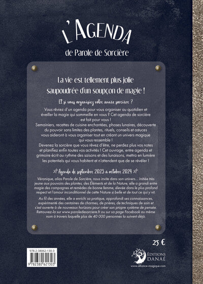 PrésentationLa vie est tellement plus jolie saupoudrée d'un soupçon de magie ! Et si vous organisiez votre année sorcière ? Vous rêviez d'un agenda pour vous organiser au quotidien et éveiller la magie qui sommeille en vous ? Cet agenda de sorcière est fait pour vous ! Semainiers, recettes de cuisine enchantées, phases lunaires, découverte du pouvoir sans limites des plantes, rituels, conseils et astuces vous aideront à vous organiser tout en créant un univers magique qui vous ressemble ! Devenez la sorcière que vous rêvez d'être, ne perdez plus vos notes et planifiez enfin toutes vos activités ! Cet ouvrage, entre agenda et grimoire écrit au rythme des saisons et des lunaisons, mettra en lumière les potentiels qui vous habitent et n'attendent que de se révéler ! Afficher moinsAfficher plus