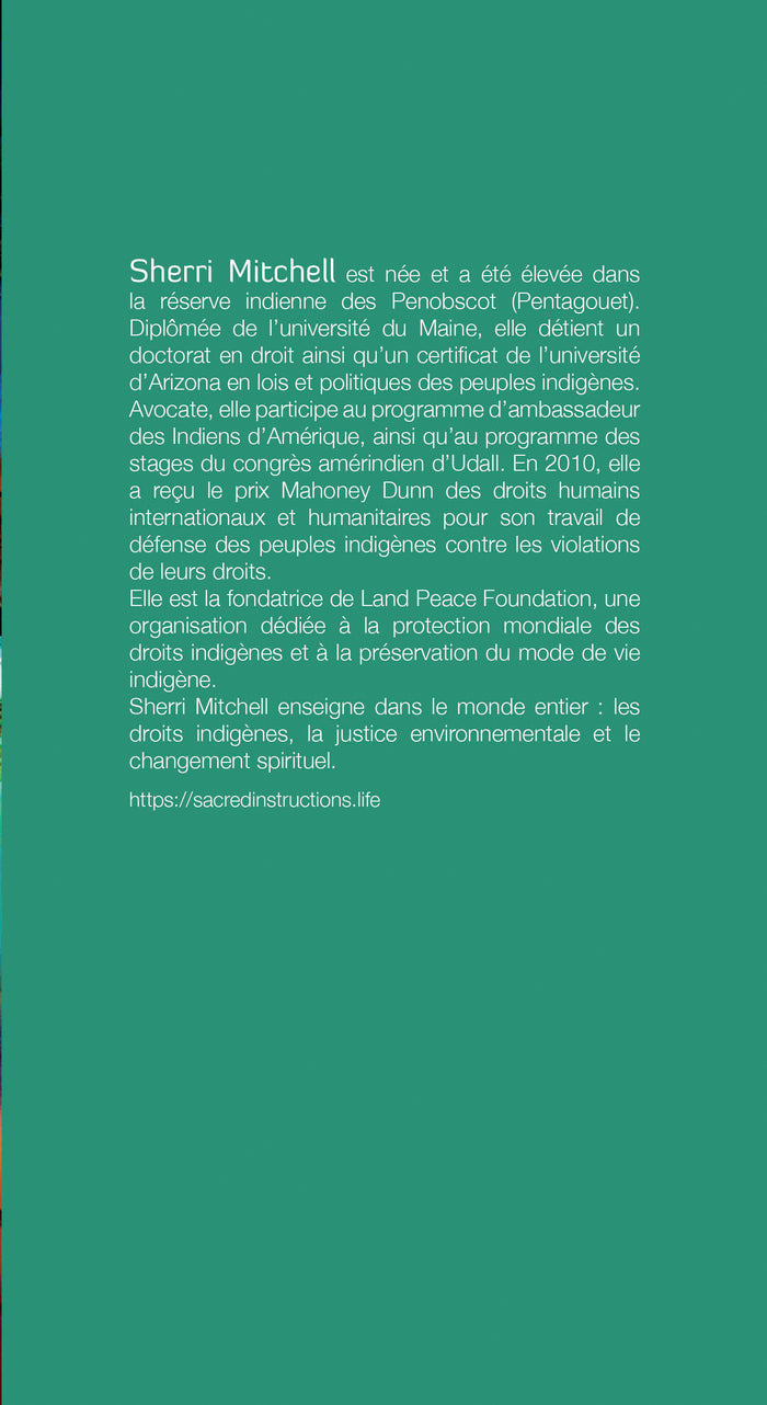 PrésentationLa sagesse et la révélation de certaines prophéties amérindiennes nous donnent des clés de compréhension sur ce que nous vivons aujourd'hui, et sur les enjeux véritables de la transition. S'inspirant de la connaissance ancestrale de sa tribu, ainsi que de son expérience en tant qu'avocate et militante, Sherri Mitchell aborde quelques-unes des questions les plus importantes à l'heure actuelle, comme la protection de l'environnement et les droits de l'homme. Pour ceux qui cherchent les voies du changement, ce livre présente un ensemble de valeurs culturelles pouvant permettre d'assurer notre survie collective pour le bien des générations futures. Ce livre analyse, à partir de l'histoire des tribus amérindiennes, les éléments qui nous ont coupés de nos relations à la terre et de l'authenticité de nos relations les uns aux autres. L'auteure nous révèle également qu'un grand nombre des prophéties gardées pendant des générations dans les tribus sont au temps de leur accomplissement. ,Note biographique Sherri Mitchellest née et a été élevée dans la réserve indienne des Penobscot. Diplômée de l'université du Maine, elle a un doctorat en droit ainsi qu'un certificat de l'université d'Arizona en lois et politiques des peuples indigènes. Avocate, elle participe au programme d'Ambassadeur des Indiens d'Amérique, ainsi qu'au programme des stages du Congrès amérindien d'Udall. En 2010, elle a reçu le prix Mahoney Dunn des Droits Humains Internationaux et Humanitaires pour son travail de défense des peuples indigènes contre les violations de leurs droits. Elle est la fondatrice de Land Peace Foundation, une organisation dédiée à la protection mondiale des droits indigènes et à la préservation du mode de vie indigène. Sherri Mitchell enseigne dans le monde entier : droits indigènes, justice environnementale et changement spirituel. ,Sommaire Préface de Larry Dossey REMERCIEMENTS INTRODUCTION PREMIÈRE PARTIE Poser les bases 1 Les chants de la création 2 L'amour de milliers d'êtres DEUXIÈME PARTIE La voie de la dérive 3 Où en sommes-nous à présent ? 4 Comment nous en sommes arrivés là Le mythe de la séparation Diviser et conquérir 5 Douleurs, traumas et intimité L'aveuglement dû au trauma Trouver l'extase de la connexion divine 6 La transformation des conflits 7 Droits et responsabilités : trouver l'équilibre 8 Nous décoloniser Des couches de séparation La nourriture, l'eau, et l'air que nous respirons La langue Rituels et cérémonies Économie et écologie 9 En finir avec la dépendance enfantine 10 Le fonctionnement de la conquête L'uniformité 11 Les femmes sont les porteuses d'eau de l'univers Équilibrer le masculin et le féminin L'arrivée du patriarcat Les rôles masculin et féminin traditionnels dans les sociétés Wabanaki TROISIÈME PARTIE Imaginer le chemin du futur 12 De la loi d'attraction à la création consciente Le fonctionnement des lois de la création 13 Les enseignants et les enseignements 14 Cultiver le guerrier en soi QUATRIÈME PARTIE Reconnaître le passé et aller vers l'avenir 15 Les valeurs culturelles essentielles 16 Le mode de vie autochtone N'Dilnabamuk Mamabezu et Alabezu Wolihkomawiw Kciye Kisankeyasu et Kolikenenewelemesin Klusagn Wikuwaculal 17 Les quatre fondements de l'autodétermination La souveraineté pour l'eau La souveraineté alimentaire Souveraineté énergétique Souveraineté pour l'éducation 18 Notre vie au temps d'accomplissement des prophéties La prophétie Wabanaki : ouvrir la Porte de l'Est La prophétie Hopi des Guerriers Arc-en-Ciel La prophétie Mohawk de la Septième Génération La prophétie Anishinaabe des Sept Feux : allumer le Huitième Feu La prophétie de Crazy Horse Nos responsabilités À propos de l'auteure Afficher moinsAfficher plus