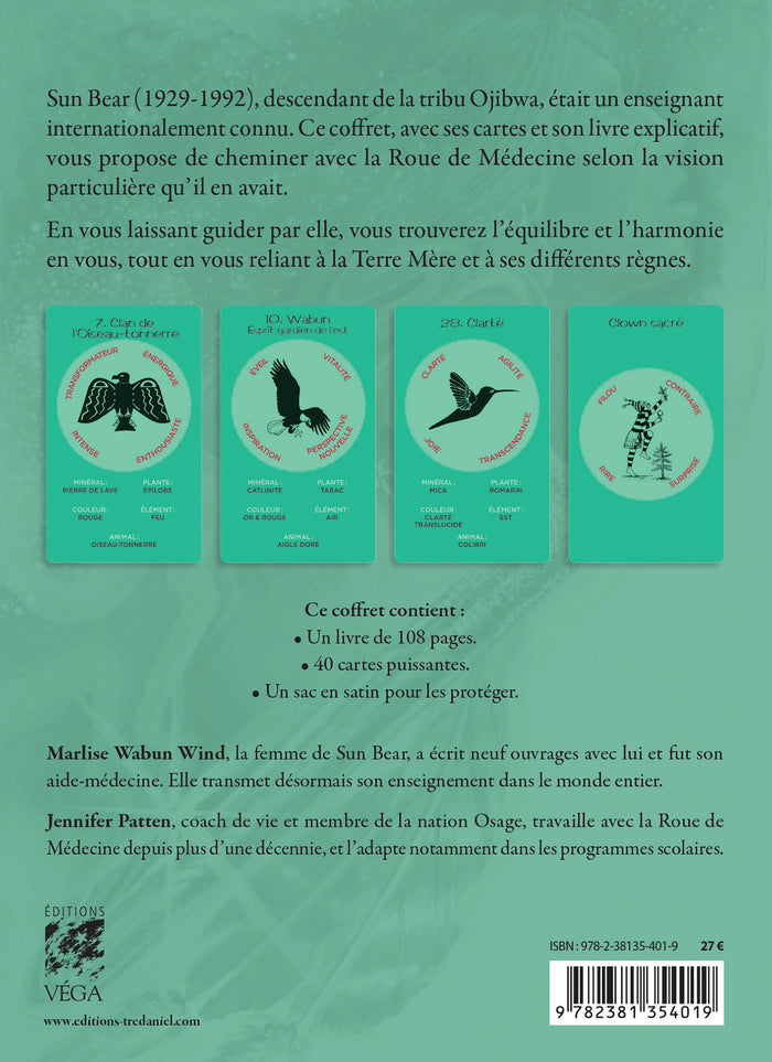 La Roue de Médecine est un outil divinatoire basé sur les enseignements amérindiens. Sun Bear, chef chippewa, et sa femme Wabun Wind ont créé ce jeu de cartes oracle pour accompagner les personnes dans leur quête spirituelle. Jennifer Patten, coach de vie et membre de la nation Osage, utilise également la Roue de Médecine dans ses programmes scolaires pour aider les jeunes à développer leur connexion à la nature et à leur propre sagesse intérieure. Afficher moinsAfficher plus
