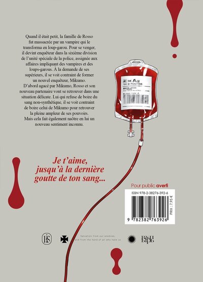 PrésentationQuand il était petit, la famille de Rosso fut massacrée par un vampire qui le transforma en loup-garou. Pour se venger, il devint enquêteur dans la sixième division de l'unité spéciale de la police, assignée aux affaires impliquant des vampires et des loups-garous. À la demande de ses supérieurs, il se voit contraint de former un nouvel enquêteur, Mikumo. D'abord agacé par Mikumo, Rosso et son nouveau partenaire vont se retrouver dans une situation délicate. Lui qui refuse de boire du sang non-synthétique, il se voit contraint de boire celui de Mikumo pour retrouver la pleine ampleur de ses pouvoirs. Mais cela fait également nôtre en lui un nouveau sentiment inconnu. Afficher moinsAfficher plus