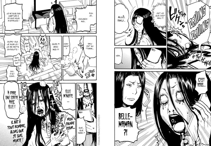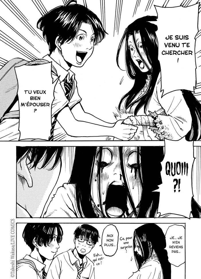 Présentation La mort n'est pas toujours un long fleuve tranquille. Shû, le revenant que Remi considère comme son grand frère, est bien décidé à la ramener au bercail. Quant à Riku, sa mère débarque sans crier gare et déclenche une réunion de crise qui met en péril l'union du couple. Et sitôt le feuéteint, voilà que la voisine sent un poids peser sur elle puis qu'un lycéen vient demander la main de Remi... D'une péripétie à l'autre, les Ninose ne connaissent jamais les temps morts ! Dans cette comédie romantico-horrifique signéeTakeshi Wakasa, un mari froussard est confronté à des événements mauvais pour le coeur, mais bons pour le moral ! Le mariage : à la vie, à lamort ! « Un très bon titre à découvrir rapidement ! »Animeland Xtra «Rom-comd'outre-tombe, cette série est une joyeuse bouffée d'air frais sépulcrale. »Zoo manga Afficher moinsAfficher plus