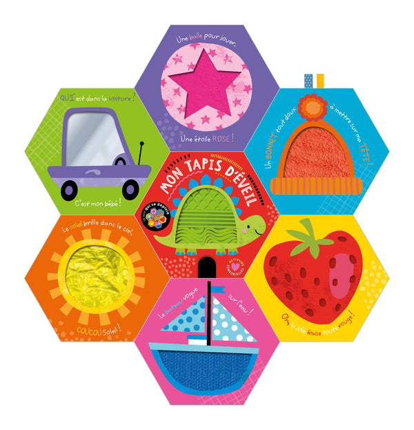 Ce livre tout carton se déploie pour former un tapis d'éveil à utiliser recto/verso. Les tout-petits vont pouvoir explorer 15 surfaces à toucher de grande taille et découvrir les couleurs avec des animaux très mignons. Afficher moinsAfficher plus
