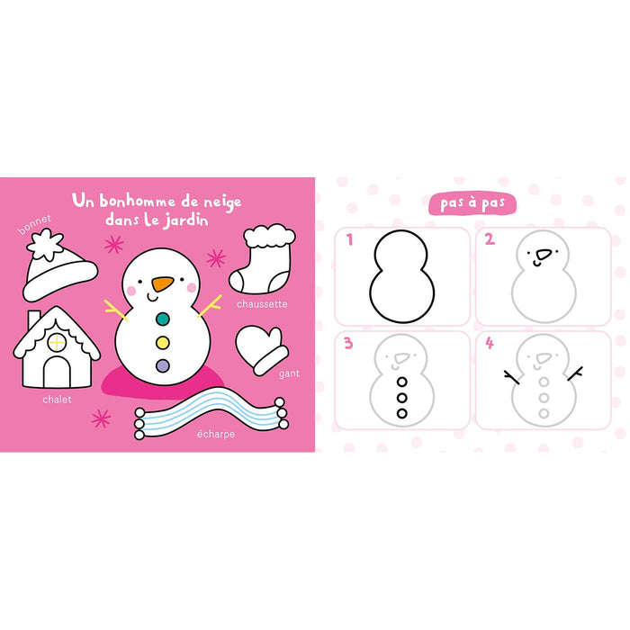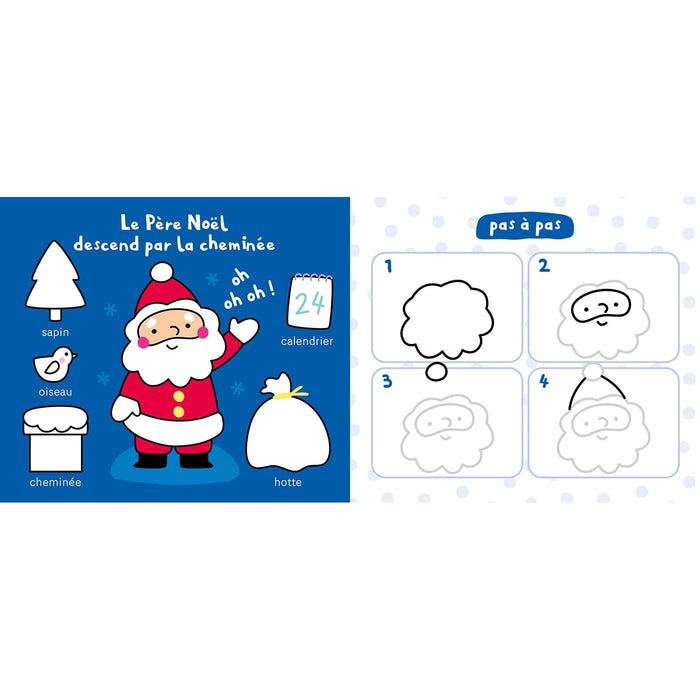 PrésentationUne ardoise magique et un livre de 20 pages cartonnées pour apprendre à dessiner 10 dessins de noël pas à pas et 50 dessins faciles. Qui veut dessiner le Père Noël, le traîneau, un renne ? Et aussi un ours polaire, un joli sapin, des décorations de Noël... Ce livre grand format propose une ardoise magique et un livre de 20 pages pour apprendre à dessiner. En tout 10 dessins expliqués pas à pas et 50 dessins au trait, faciles à reproduire. Un super produit pour exercer la coordination œil-main des jeunes enfants et leur sens de l'observation. Le stylet, adapté aux petites mains à partir de 4 ans, développe la motricité fine et prépare à l'écriture. On peut recommencer à l'infini : pour effacer, il suffit de faire glisser le curseur. Afficher moinsAfficher plus