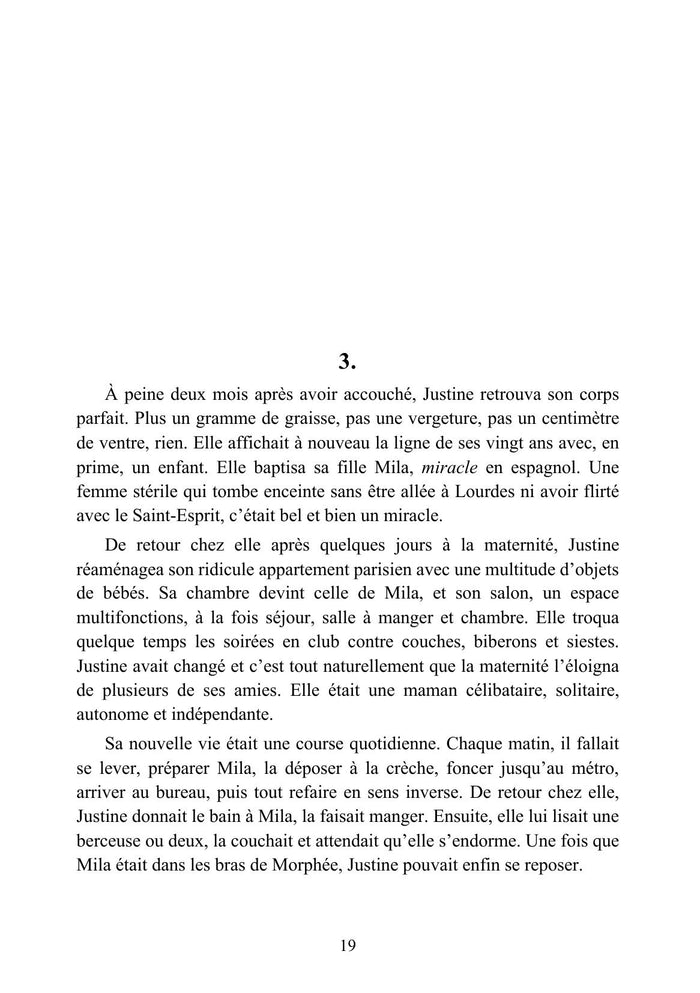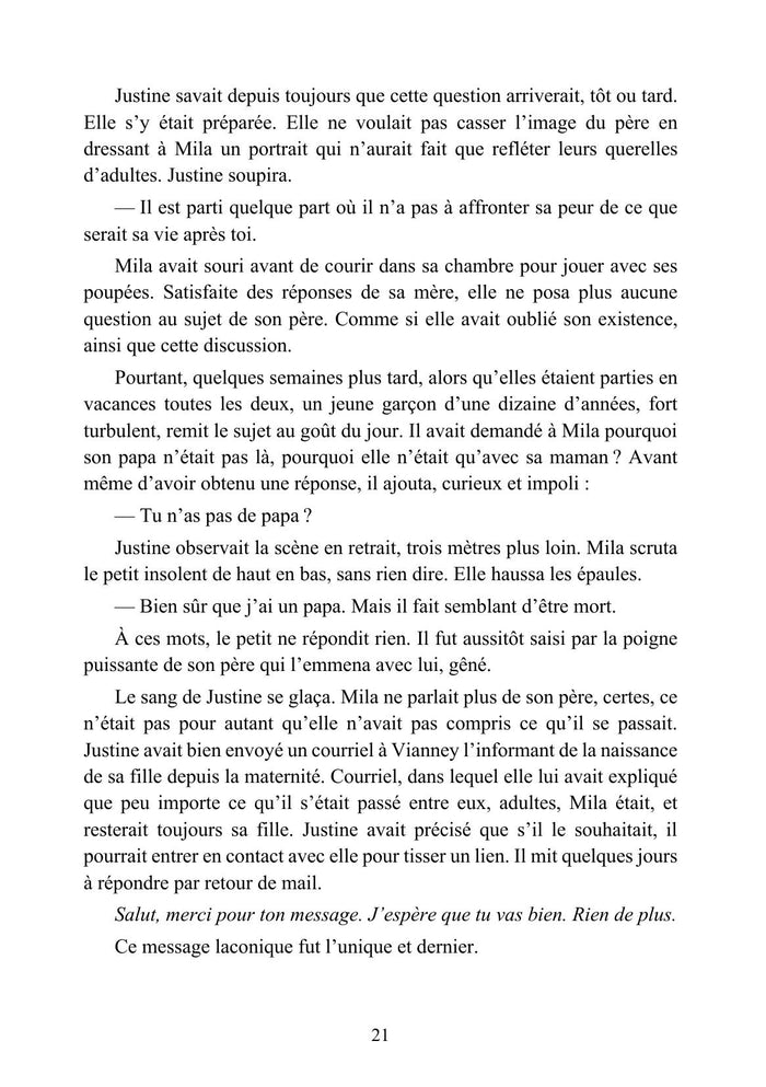 PrésentationJustine, mère célibataire approchant la quarantaine, a pour ambition de courir le Marathon de Paris. Notre héroïne poursuit cet objectif en luttant pour mener de front une existence de femme, de mère et de sportive. Il ne s'agit pas d'une énième variante sur la condition féminine, mais du récit d'une belle humanité dans une époque où l'individualisme domine. Et... Tu comptes le garder ? est l'histoire d'un combat dans lequel beaucoup de femmes, et même d'hommes, pourront se reconnaître, voire se retrouver. Afficher moinsAfficher plus