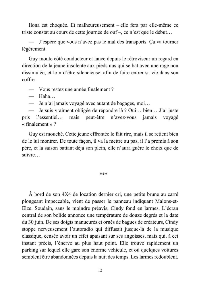 PrésentationPerdues dans les Cévennes, trois femmes, Ilona, Cindy, et Lucienne, se découvrent à l'ombre de la « maison maudite ». Dans ce paysage rugueux, elles tissent leur quotidien au rythme du village et de ses habitants pittoresques : le postier râleur, la femme du maire cleptomane, le couple de bouchers végétariens, la centenaire au langage fleuri et tant d'autres ... Et puis, il y a Lucas, Serge et Sabrina... Durant ce séjour authentique et initiatique, les trois femmes panseront ensemble leurs plaies et s'ouvriront a de nouveaux horizons, aussi inespérés qu'inattendus. Afficher moinsAfficher plus