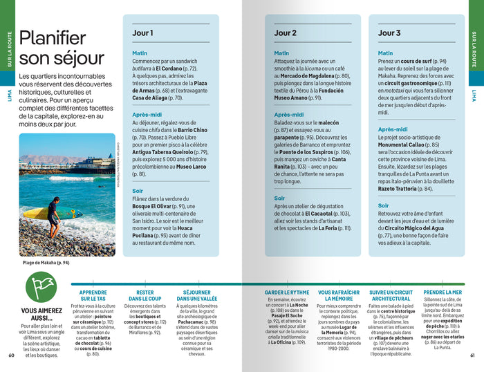 PrésentationLe guide de référence pour organiser votre voyage de rêve au Pérou ! Lonely Planet, l'éditeur n°1 de guides de voyage dans le monde. Ce guide tout en couleur vous accompagne dans votre voyage pour découvrir lesincontournables du Pérouetsortir des sentiers battus. DeMachu PicchuàLima, en passant par laCordillera Blanca, découvrez tous les trésors repérés par nos auteurssur le terrain. - Lessites incontournablesd'un voyage au Pérou :Machu Picchu, le lac Titicaca, la Cordillera Blanca, Arequipa, le Parque Nacional de Manu, Cuzco, les lignes de Nazca, Lima... - Desconseils d'experts Lonely Planetmis à jour régulièrement : les meilleures adresses (restaurants, cafés, hôtels), des recommandations pratiques pour organiser son voyage... - Lesplus belles expériencesà vivre au Pérou pour un voyage hors du commun : desactivités et sorties originalesavec toutes lesinformations nécessaireset lesastucespour les réaliser au mieux. - Des sélections d'itinéraires thématiquesà pied, à vélo ou en voiture : promenade architecturale àLima,le chemin de l'Inca menant auMachu Picchu, à vélo dans la péninsule deChucuito, le trek deSanta Cruz... Mais aussi desitinéraires régionauxpour découvrir le meilleur du Pérou,entoute saison, quel que soit le temps ou le budget disponible. - Unfocus completsur lesactivités de plein airà faire au Pérou, avec une attention particulière portée sur larandonnée, mais aussi le vélo, l'escalade ou encore les sports nautiques. - Plus de50 cartes et plansclairs du Pérou et de ses villes principales pour repérer les sites en un coup d'œil et organiser ses déplacements. Ce guide propose également des informations pourvoyager responsableetavec des enfants, ainsi que deschapitres thématiquessur la vie des habitants, l'histoire et lestraditions du Pérou. Un guide clair et synthétique pour construire facilement son voyage et vivre des expériences inoubliables au Pérou, au plus près des habitants. Afficher moinsAfficher plus