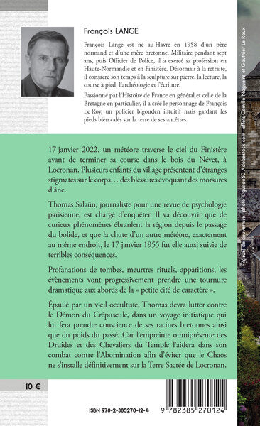 Dans un village de Bretagne, des phénomènes étranges surviennent après la chute d'un météore. Le journaliste Thomas Salaün mène l'enquête et découvre des meurtres rituels, des apparitions et une menace ancienne. Aidé par un occultiste, il devra affronter le Démon du Crépuscule et empêcher le Chaos de s'abattre sur la région. Un mélange de thriller ésotérique et de fantasy, où le passé celtique se mêle au présent. Afficher moinsAfficher plus