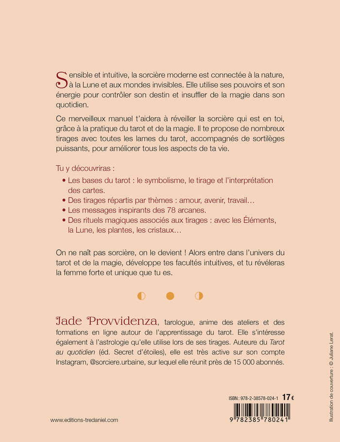 Ce manuel propose une approche moderne du tarot, combinant les tirages traditionnels avec des pratiques contemporaines. L'auteure, Jade Provvidenza, tarologue et astrologue, partage ses connaissances et son expérience pour permettre aux lecteurs de se familiariser avec cet outil divinatoire. Le livre aborde les différentes cartes, leur symbolisme, ainsi que des techniques de tirage et d'interprétation. Un ouvrage pratique et accessible pour ceux qui souhaitent explorer le monde du tarot. Afficher moinsAfficher plus