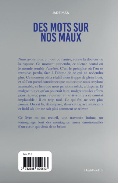 Recueil d'écrits et de conseils pour surmonter la douleur des ruptures, 'Des mots sur nos maux' aborde le moment difficile où l'on doit faire face à la perte d'une relation. Les différents textes présents dans l'ouvrage permettent de comprendre ses émotions, de trouver des pistes de reconstruction et de se tourner vers l'avenir avec courage. Un accompagnement dans le processus de deuil amoureux et la reconstruction de soi est proposé aux lecteurs en quête de soutien.