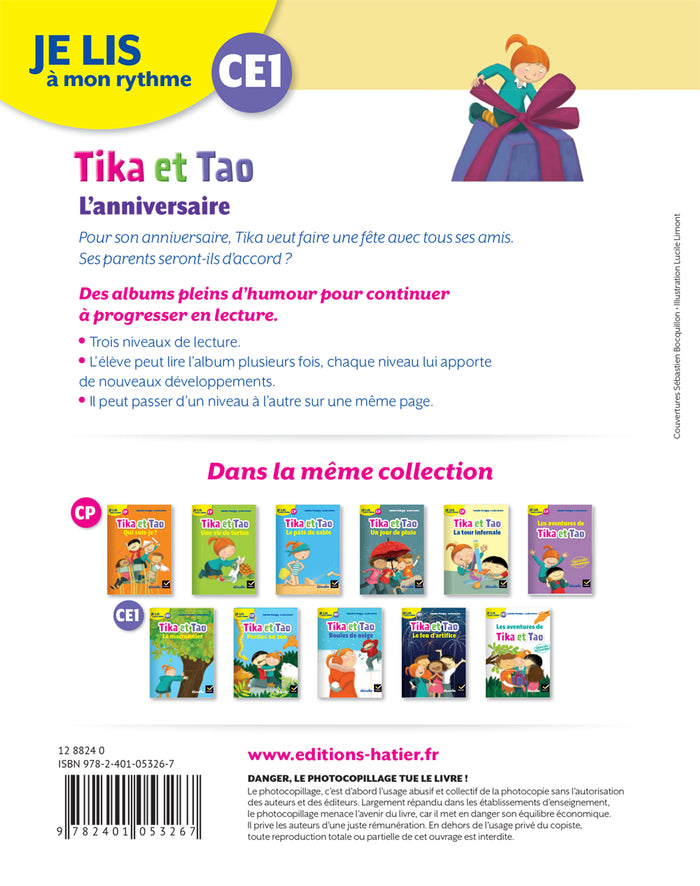 Ce livre de la collection 'Je lis à mon rythme' est destiné aux enfants de CE1. Dans cette aventure, les jeunes lecteurs suivent Tika et Tao préparant un anniversaire surprise. Les textes simples et les illustrations colorées encouragent l'apprentissage de la lecture. Afficher moinsAfficher plus