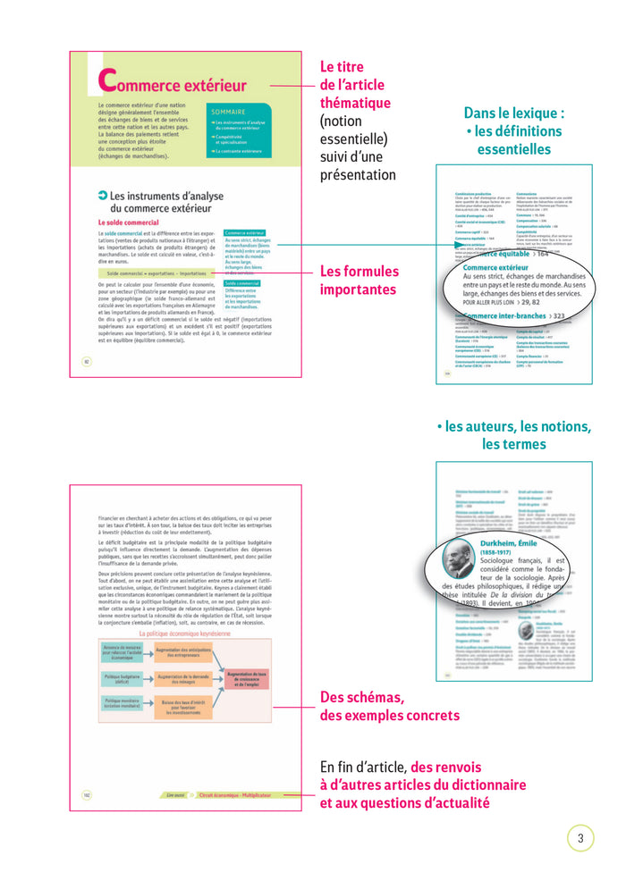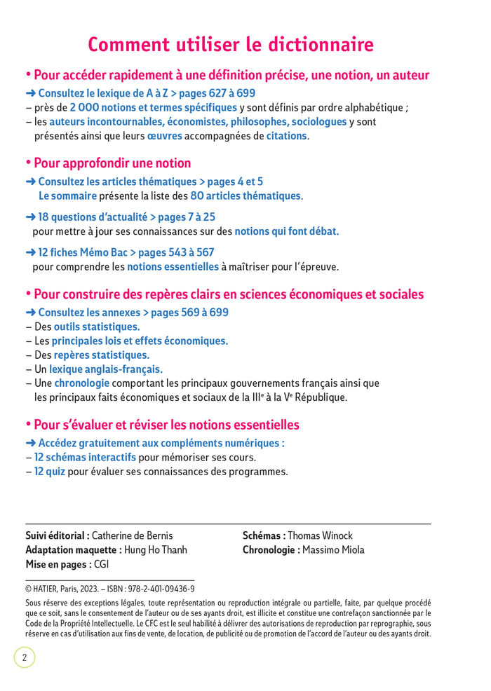 PrésentationUn dictionnaire de SES en 2de, 1re et Tle pour comprendre et maîtriser l'essentiel des scienceséconomiques et sociales.  •Un dictionnaire complet, accessible et pratique :  -Plus de 2 000 définitions des notions et mots-clés  -80 articles thématiques pour approfondir le cours  -Des schémas pour mieux comprendre les mécanismeséconomiques  -Des données statistiques actualisées  •Un cahier"questions d'actualité" entièrement misà jour  • Des outils de révision et d'entraînement pour le Bac :  - Desfiches de révisionMémo Bac sur les notions essentielles à maîtriser pour l'épreuve de spécialité  -Des ressources numériques gratuites(quiz de révision, schémas interactifs). Afficher moinsAfficher plus