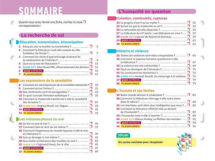 PrésentationDes fiches de révision conformes au nouveau programme d’HLP (Humanités, Littérature& Philo) Tle  générale  : un outil 100  % efficace pour réussir l’épreuve de spécialité au bac.   L’essentiel du programme d’HLP Tle en fiches détachables Sur chaque thème du programme : • des fiches de cours, claires et visuelles • des quiz pour s’évaluer • des flashcards pour réactiver ses connaissances   INCLUS  : dans un dépliant détachable De grandes cartes mentales pour mieux mémoriser   OFFERT  : un abonnement au site de révision annabac Pour accéderà des ressources complémentaires en HLP et dans d’autres matières : fiches, vidéos, quiz et sujets d’annales corrigés Afficher moinsAfficher plus