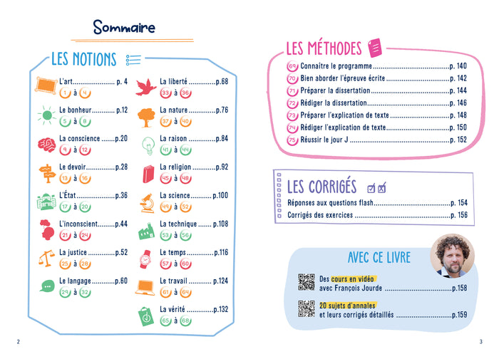 Ce livre propose aux lycéens de terminale générale une préparation complète à l'épreuve de philosophie du baccalauréat. Il présente de manière claire et visuelle les 17 notions du programme, les méthodes de la dissertation et de l'explication de texte, ainsi que 51 sujets d'annales expliqués étape par étape. Des éléments dessinés, des questions flash et des schémas facilitent la compréhension et la mémorisation. Des compléments en ligne, tels que des cours en vidéo et des sujets corrigés, sont également disponibles. Afficher moinsAfficher plus