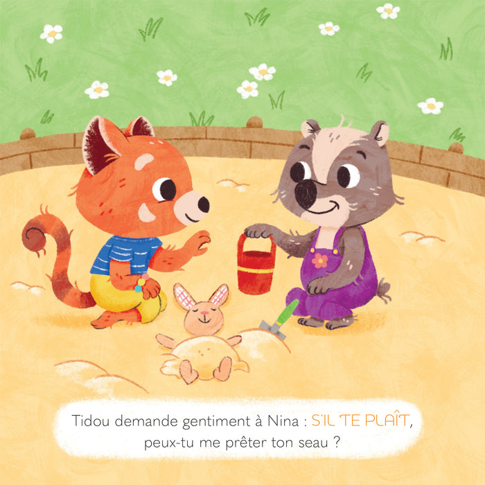 PrésentationTidou et Doudou sont heureux de se rendre au parc aujourd’hui.Quelle belle journée pour retrouver leur amie Nina !Une histoire pour signer les mots de la politesse et du vivre-ensemble racontée par Lyla Signes avec un QR-codeà la fin pour accéderà une vidéo de tous  les signes de l’histoire ! Afficher moinsAfficher plus
