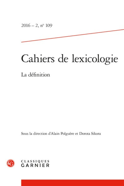 Cahiers de lexicologie: La définition (2016) (2016 - 2, n° 109)