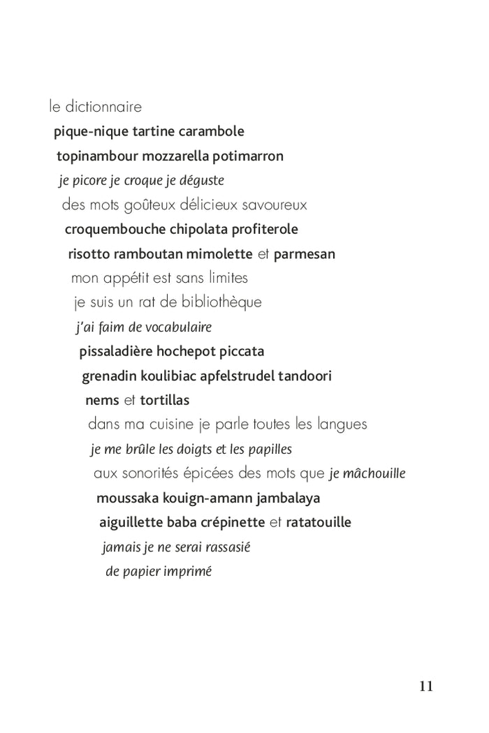 Présentation À consommer de préférence avant la date indiquée sur le dessus du paquet.À déguster avec une noix de beurre.À diluer dans un verre d'eau sucrée.À renifler prudemment avant d'avaler.À prendre avec des pincettes.À jeter vite fait bien fait dans la bouche d'égout.À recracher immédiatement en cas d'absorption par inadvertance.À laisser reposer en paix pour toujours. Un recueil de poésieà consommer sans modération età mettreà toutes les sauces. Afficher moinsAfficher plus