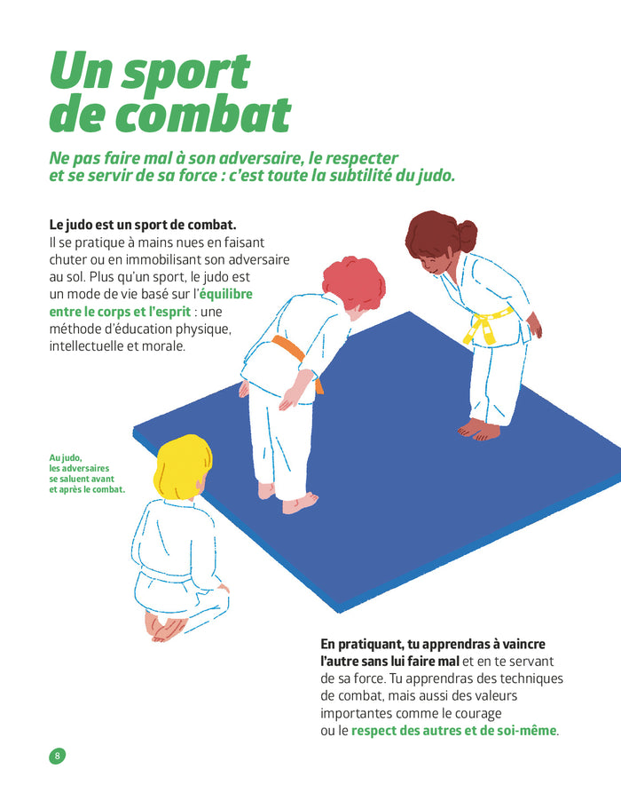Présentation"Je fais du judo avec Romane Dicko",le titre de la nouvelle collection sport de Milan pour découvrir, se passionner et pratiquer le judo avec la championne du monde, d'Europe et médaillée olympique ! Bouger et se faire plaisir Un titre pour donner envie de bouger, se faire plaisir, se sentir bien dans son corps et dans sa tête en s'initiant à une activité sportive,le judo, accompagné par une sportive de haut niveau. Un coaching personnalisé L'enfant découvre pas à pas les différentes facettes de la discipline : le club, l'entraînement, les bases de la technique mais aussi l'histoire et les grandes compétitions. Il se passionne en partageant avec Romane Dicko, au fil des pages, moments forts, conseils, astuces, motivations et rêves les plus fous ! Un documentaire complet d'initiation au judo Le titre comprend 5 chapitres : Le judo, Bienvenue au club, L'entraînement, La technique, La compétition, qui guident l'enfant dans ses premiers pas dans le judo. La maquette claire et dynamique, les textes courts et illustrés offrent une approche immédiate. Des photos permettent de rêver avec les stars, et des illustrations guident l'enfant dans sa pratique. Dans chaque double, l'athlète prend la parole et partage un moment de vie, propose un conseil, une astuce ou une motivation. Afficher moinsAfficher plus