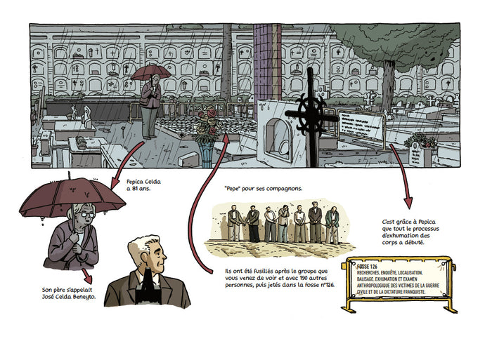 Le 14 septembre 1940, 532 jours après la fin de la guerre civile espagnole, José Celda est fusillé par le régime franquiste et enterré dans une fosse commune avec onze autres hommes. 70 ans plus tard, sa fille, âgée de huit ans au moment des faits, parvient à localiser sa dépouille... Les auteurs accompagnent Pepica Celda dans son parcours douloureux au coeur d'une nation qui a choisi l'oubli. Ce roman graphique poignant mêle habilement témoignage et histoire, mettant en lumière les conséquences persistantes de la guerre civile espagnole. Afficher moinsAfficher plus