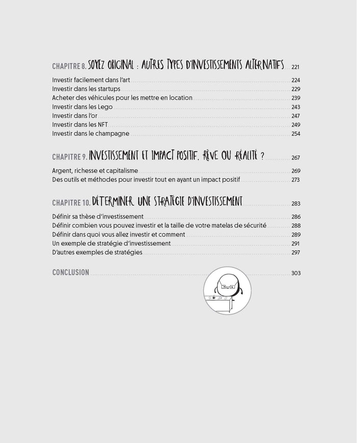 Avec ce livre, vous verrez que l'inflation est votre pire ennemie, vous découvrirez le pouvoir des intérêts composés, vous identifierez les biais cognitifs qui vous mènent à l'impasse, vous apprendrez à utiliser les nouveaux services qui mettent l'investissement à portée de tous... et surtout vous définirez une stratégie d'investissement qui vous correspond.
