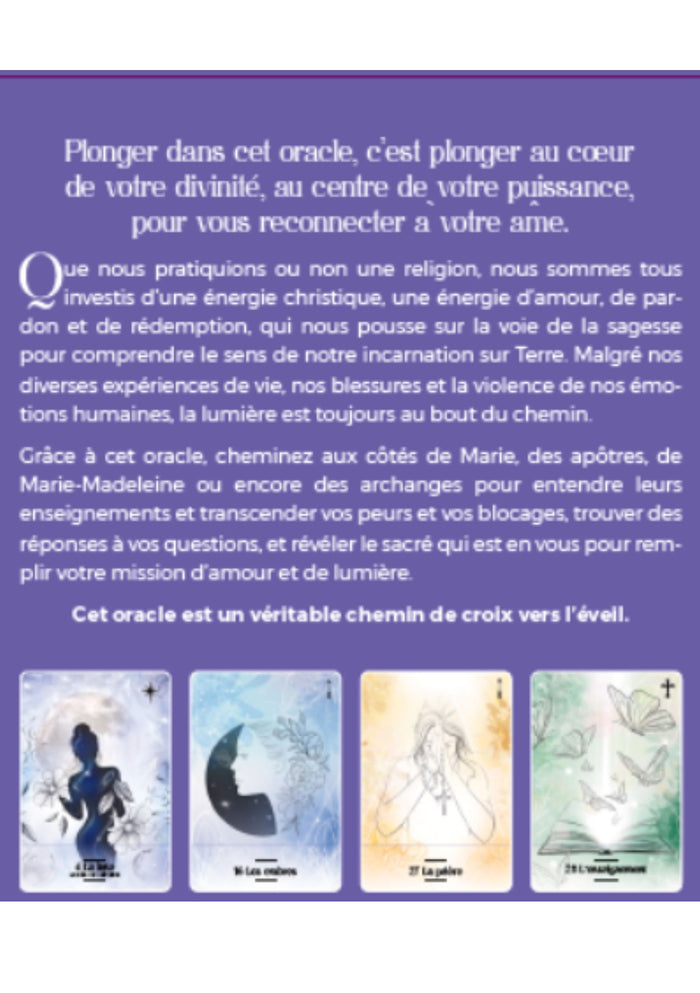 L'Oracle des énergies christiques est un jeu divinatoire créé par Sonia Jean, permettant de se reconnecter à sa divinité intérieure. Que l'on pratique une religion ou non, nous possédons tous en nous une énergie christique, faite d'amour, de pardon et de rédemption. À travers les cartes de cet oracle, accompagné de textes inspirants, on est invité à cheminer aux côtés de figures symboliques telles que Marie, les apôtres et les archanges, pour comprendre le sens de notre vie, dépasser nos peurs et blocages, et révéler notre mission d'amour et de lumière. Afficher moinsAfficher plus