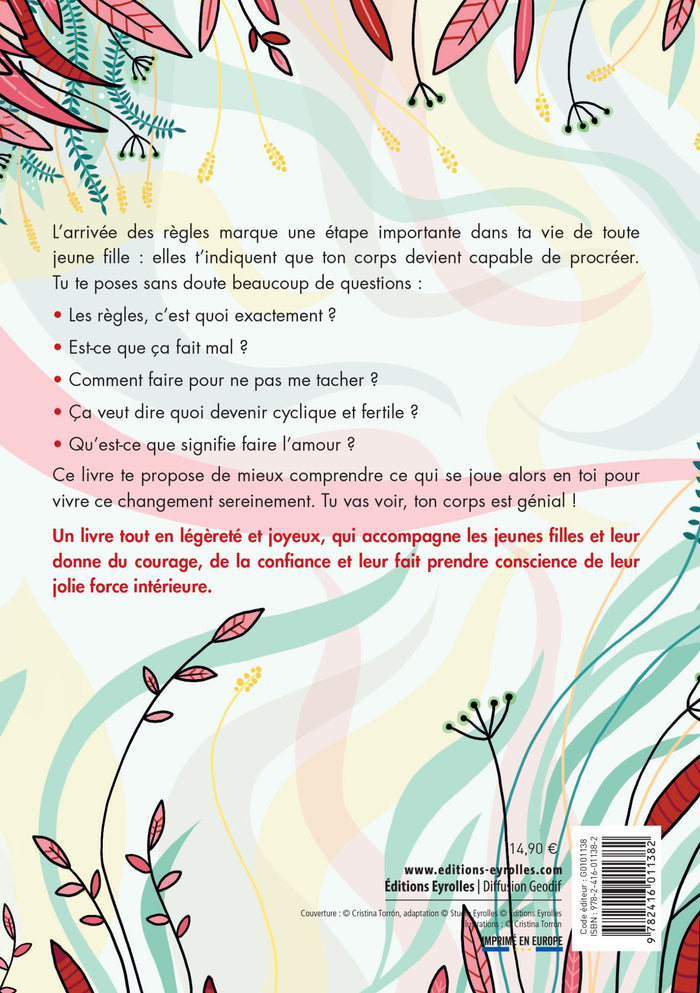 Présentation L'arrivée des règles marque une étape importante dans ta vie de toute jeune fille : elles t'indiquent que ton corps devient capable de procréer. Tu te poses sans doute beaucoup de questions : Les règles, c'est quoi exactement ?Est-ce que ça fait mal ?Comment faire pour ne pas me tacher ?Ça veut dire quoi devenir cyclique et fertile ?Qu'est-ce que signifie faire l'amour ? Ce livre te propose de mieux comprendre ce qui se joue alors en toi pour vivre ce changement sereinement. Tu vas voir, ton corps est génial ! Un livre tout en légèreté et joyeux, qui accompagne les jeunes filles et leur donne du courage, de la confiance et leur fait prendre conscience de leur jolie force intérieure. Afficher moinsAfficher plus