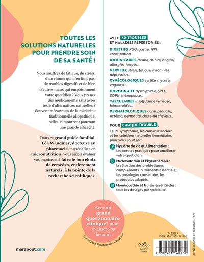 Dans ce guide familial, la docteure en pharmacie Léa Wauquier propose des solutions naturelles pour 50 troubles de santé, allant des problèmes digestifs aux troubles hormonaux en passant par les maux dermatologiques et psychologiques. Pour chaque trouble, elle présente les symptômes, les causes et les remèdes naturels à base de micronutrition, phytothérapie, homéopathie et huiles essentielles. Un ouvrage complet pour ceux qui souhaitent se soigner de manière naturelle. Afficher moinsAfficher plus