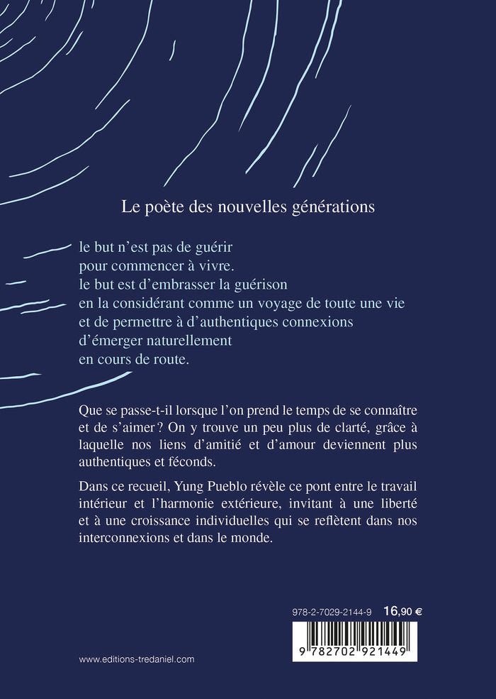 PrésentationDeuxième opus best-seller duNew York Timesde Yung Pueblo, poète, méditant et conférencier à succès américain. Il est le chantre des nouvelles générations, sensibles à l'idée que seule la transformation intérieure sera source de guérison collective et de paix globale. Un voyage intérieur, des " poèmes de l'âme " pour se transformer soi-même et voir le monde se transformer. Le poète des nouvelles générations "notre travail intérieur favorise l'avancée collective vers un monde meilleur. chacun rend l'autre plus fort. l'élargissement d'une conscience de soi-même qui débouche sur une action collective est le remède dont cette terre a besoin." Que se passe-t-il lorsque l'on prend le temps de se connaître et de s'aimer ? On y trouve un peu plus de clarté, grâce à laquelle nos liens d'amitié et d'amour deviennent plus authentiques et féconds. Dans ce recueil, Yung Pueblo révèle ce pont entre le travail intérieur et l'harmonie extérieure, invitant à une liberté et à une croissance individuelles qui se reflètent dans nos interconnexions et dans le monde. "le but n'est pas de guérir pour commencer à vivre. le but est d'embrasser la guérison en la considérant comme un voyage de toute une vie et de permettre à d'authentiques connexions d'émerger naturellement en cours de route." Best-seller duNew York Times ,Note biographique Né en Équateur, Diego Perez a émigré aux États-Unis enfant. Il a grandi à Boston et fait ses études à l'Université Wesleyenne. En 2012, il s'initie à la méditation vipassana auprès du maître Satya Narayan Goenka. Au cours d'un stage de méditation, dans le plus grand silence, il a une révélation : il est possible d'accéder à une guérison et à une libération véritables. Après avoir déménagé à New York, il se consacre davantage à sa pratique méditative. Les transformations dont il est le témoin direct l'incitent à décrire ses expériences à travers l'écriture. Le pseudonyme Yung Pueblo signifie " jeunes gens " et porte en lui-même un message : l'humanité entre dans une ère de croissance intérieure et de guérison remarquables où les êtres humains sont appelés à élargir leur conscience et à se libérer de leurs vieux fardeaux. La présence numérique de Yung Pueblo et ses ouvrages sont destinés à aider les personnes qui entreprennent leur propre voyage de transformation personnelle. Diego Perez vit aujourd'hui dans l'ouest du Massachusetts avec son épouse. Le couple mène une vie paisible et pratique la méditation au quotidien. yungpueblo.com (logo facebook) yungpueblo (logo instagram) @yung_pueblo (logo twitter) yungpueblo Afficher moinsAfficher plus